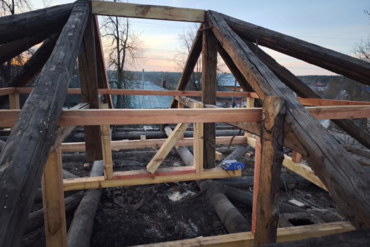 Дом-памятник, который активно восстанавливает Николай Калиничев, прошел историко-культурную экспертизу и получил разрешение от управления охраны объектов культурного наследия на производство ремонтных работ. Их начали с кровли, которую еще до дождей успели закрыть пароизоляцией.