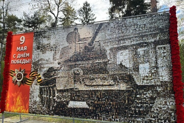 На ней запечатлен легендарное боевое орудие времен Великой Отечественной войны – танк Т-34, а также фото участников сражений тех времен.