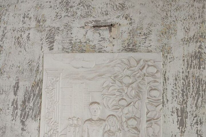 Во время ремонта, который сейчас ведется в средней школе № 3 в наукограде в фойе первого этажа на стенах строители заметили два панно.