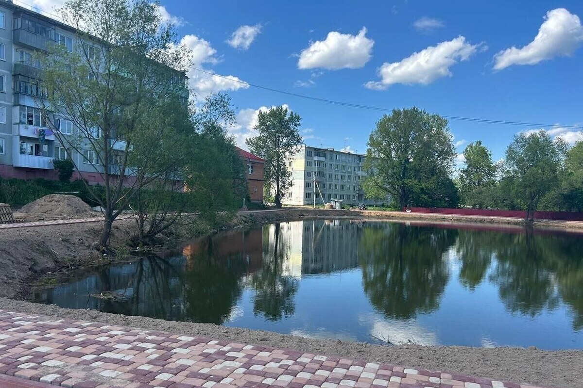 В рамках проекта благоустройства территории, который победил в прошлогоднем голосовании в рамках ФКГС нацпроекта «Жилье и городская среда», у пруда появятся скамейки, освещение и озеленение.