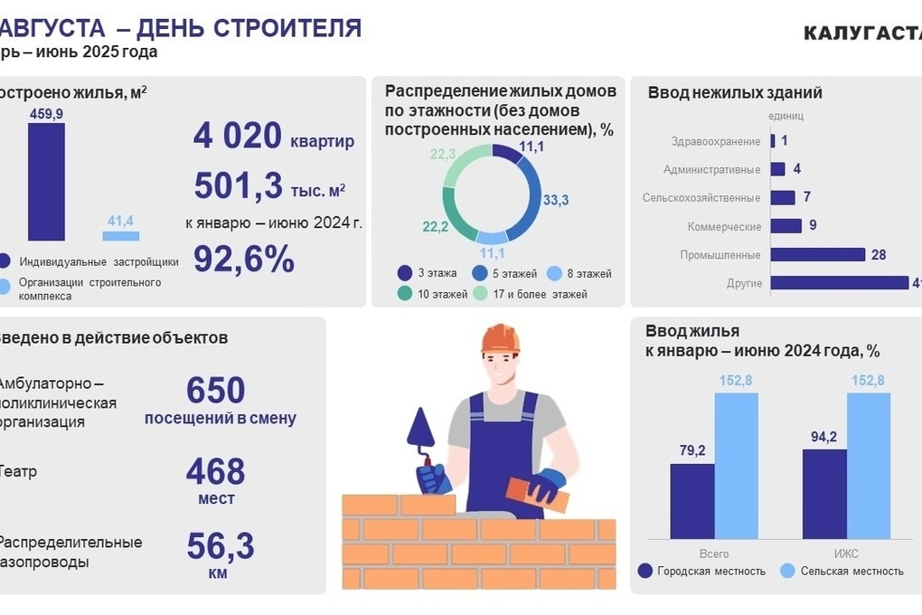 Более 501 тыс. квадратных метров жилья построено за полгода в Калужской области, газ проведен в 1 936 домов.