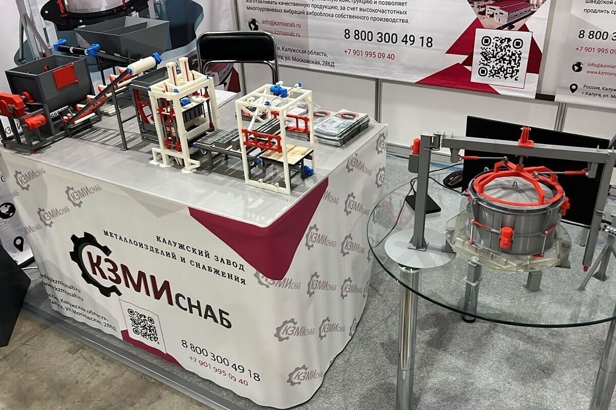 В рамках прошедшей в Москве международной специализированной строительной выставки «Цемент. Бетон. Сухие смеси 2025», собравшей свыше 600 специалистов из 22 стран, калужское ООО «КЗМИ СНАБ»,прелставило два образца разработанного оборудования: Калужский вибропресс и вибропресс ЛВК-2000.