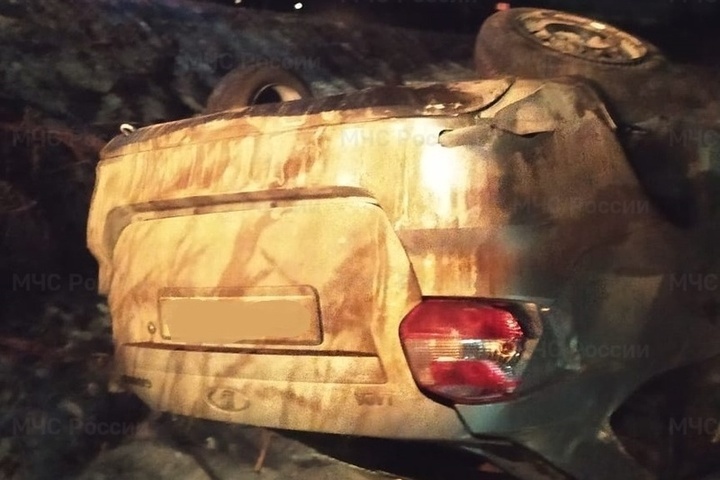 Водитель «Лада Гранта» не справился с управлением, машина слетела с деревенской дороги в кювет и опрокинулась.