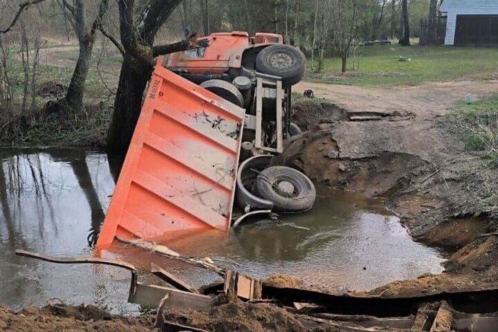 Он сломался накануне во время того, как по нему проезжал самосвал. Машина оказалась в воде. К счастью, в ДТП никто не пострадал.
