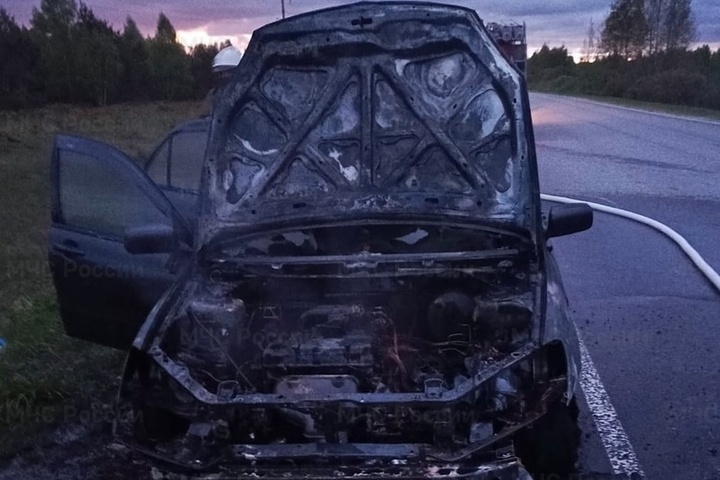 Транспортное средство вспыхнуло на втодороге Людиново-Жиздра, вблизи деревни Мужитино.