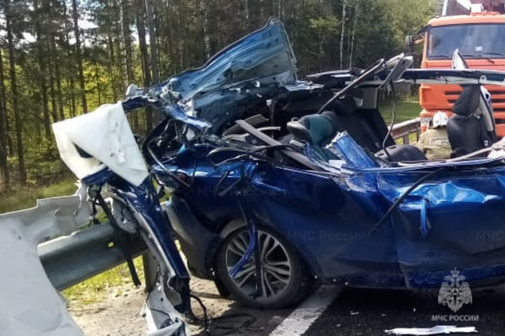 Иномарка утром 14 мая врезалась в припаркованный на обочине «Камаз». «Хавал» получил серьезные повреждения корпуса.