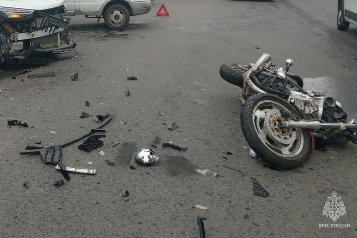 Китайская иномарка и мотоцикл не поделили дорогу на Грабцевском шоссе.