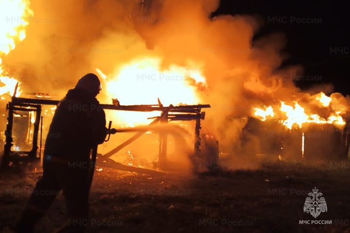 ,Деревянный габаритный ангар выгорел полностью. Как сообщает пресс-служба регионального МЧС, пострадавших в огне нет.  Причины возгорания пока не установлены.