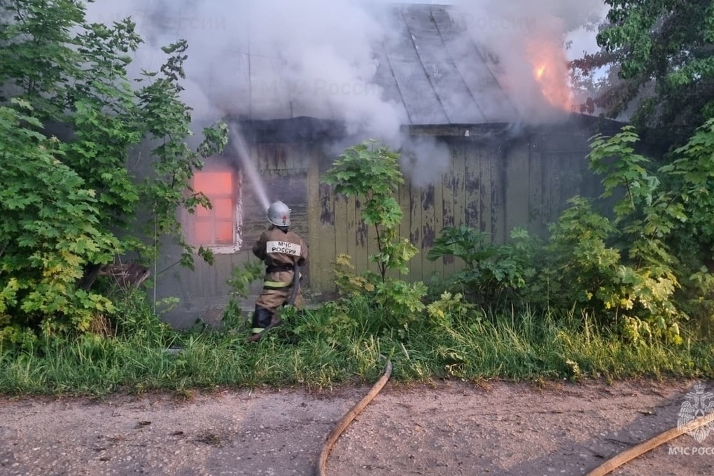 Пожар в деревянном строении случился около девяти вечера. На место тушения на улицу Паршина прибыли 15 пожарных и три единицы спецтехники.