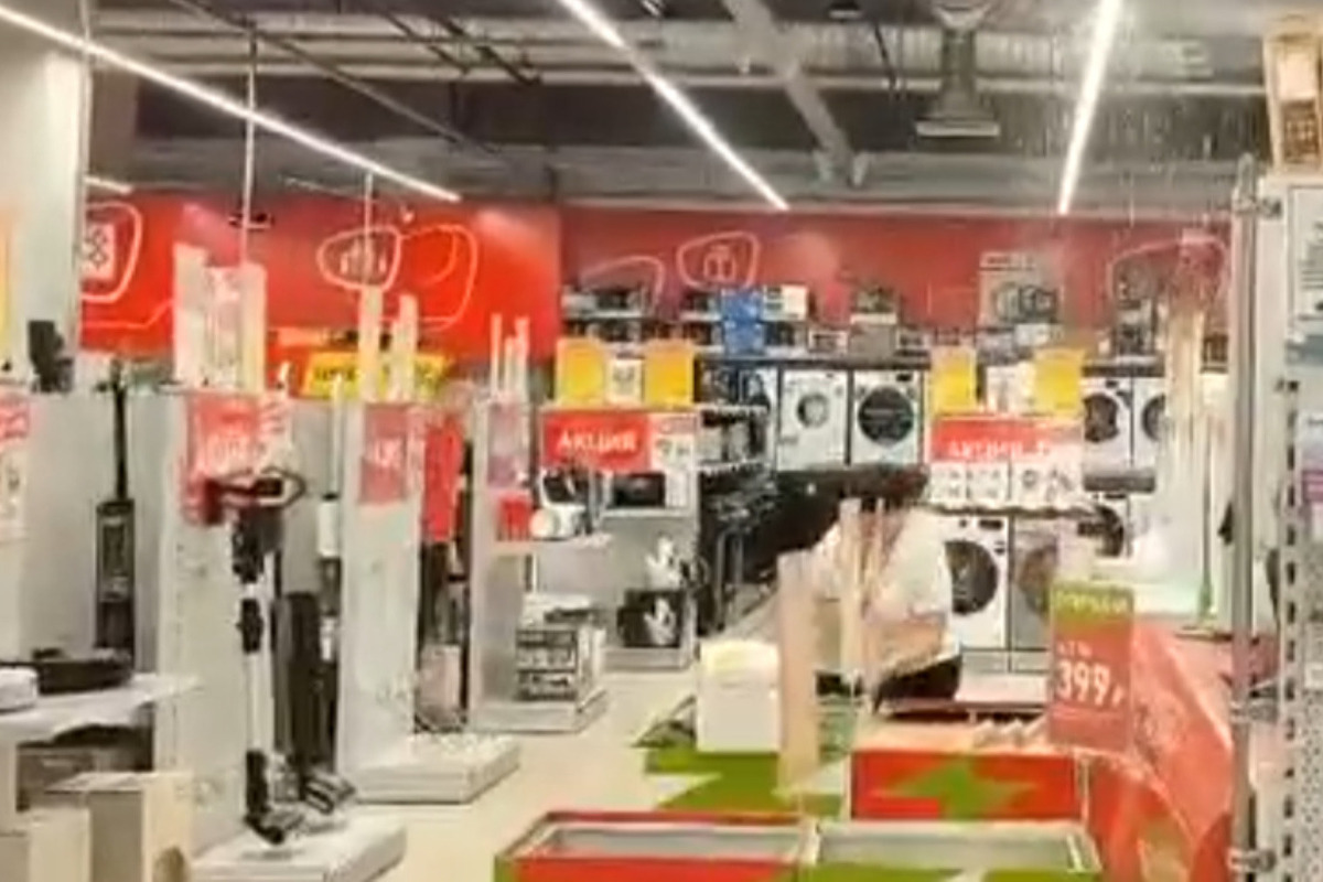 Из-за сильного дождя в магазине известной торговой сети в торговом центре на улице Кубяка, с потолка хлынула вода. До принятия всех необходимых мер сотрудникам пришлось действовать самостоятельно.