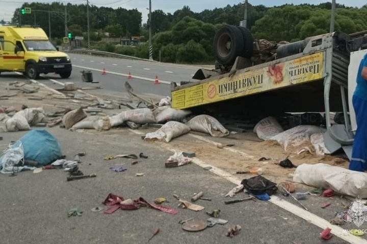 Сорокалетний водитель грузовика BAW Fenix ехал из Москвы в сторону Брянска, на калужском участке трассы у грузовика оторвалось колесо. В результате фура опрокинулась, водитель получил травмы.
