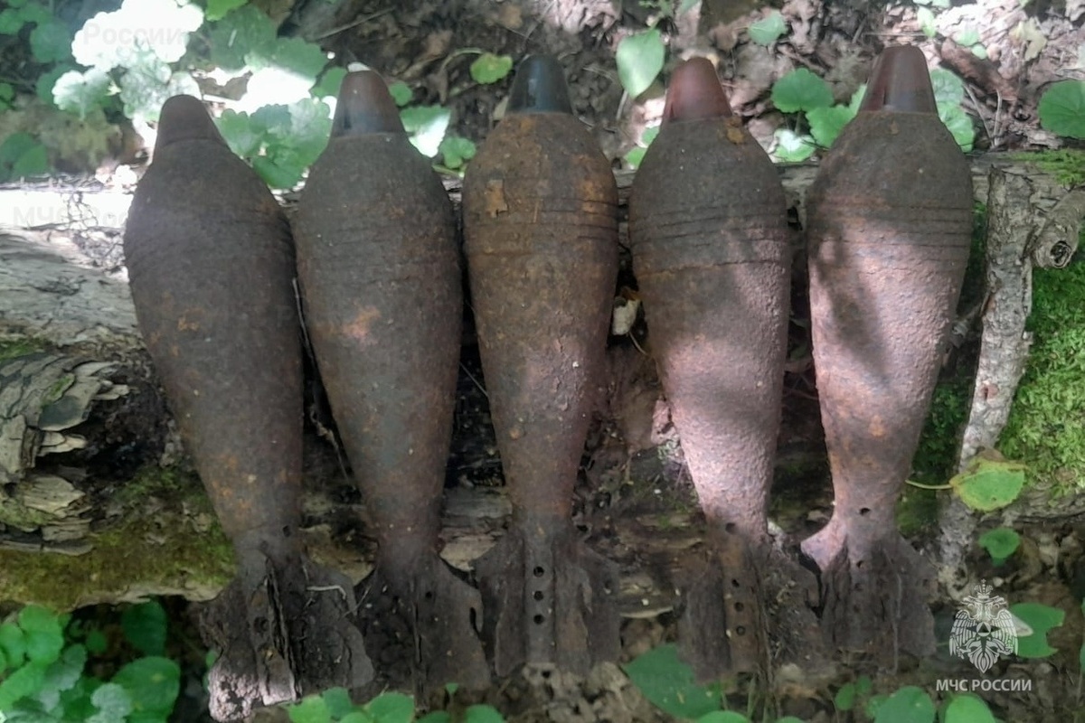 А в Думиничском районе в поселке новый – пять минометных мин 82 мм.