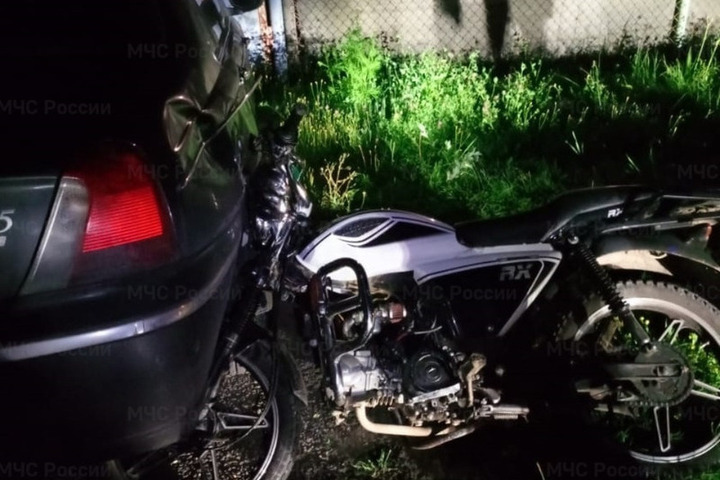 ДТП произошло накануне вечером в местной деревне Тростье. Юноша 19-ти лет, управляя мопедом, въехал в стоявший на стоянке Rover .
