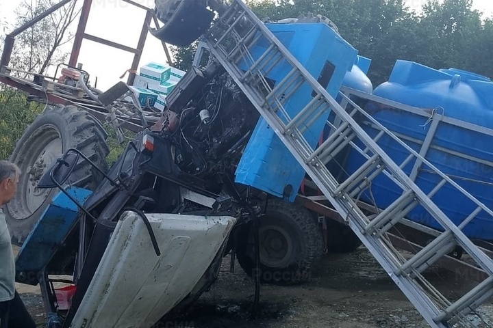 Трактор «МТЗ-4218» перевернулся, в результате чего в нем смяло кабину.
