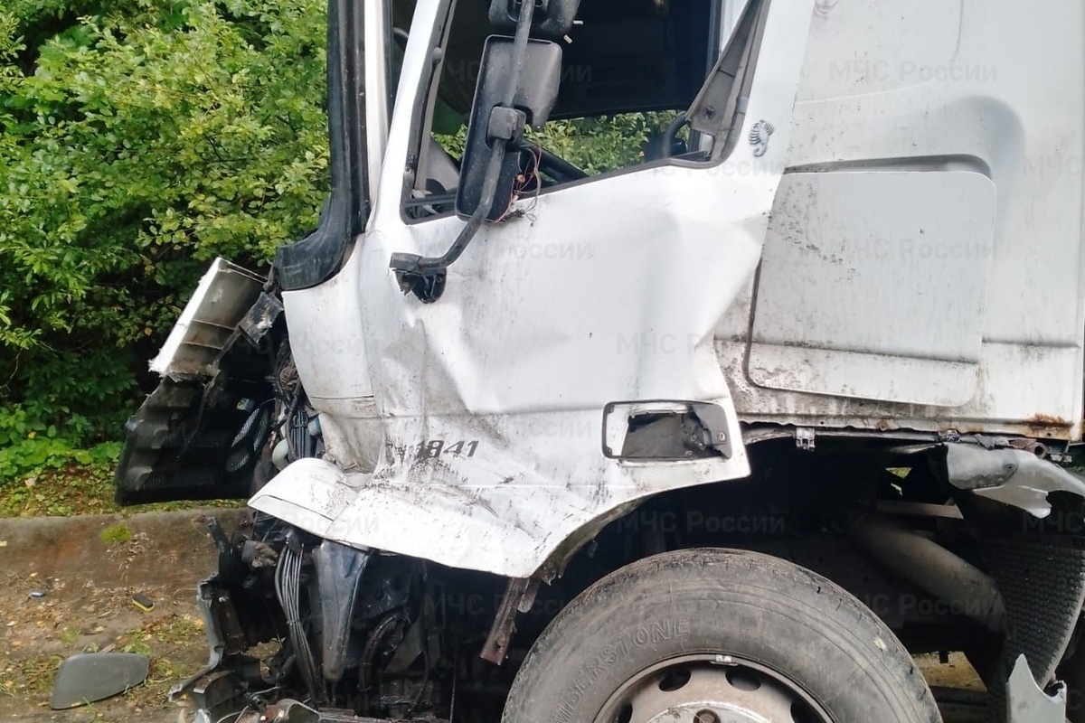 Mercedes-Benz «Камаз»при столкновении получили повреждения. Как сообщают в пресс-службе регионального МЧС, несмотря на габариты, машины не заблокировали движение на дороге.
