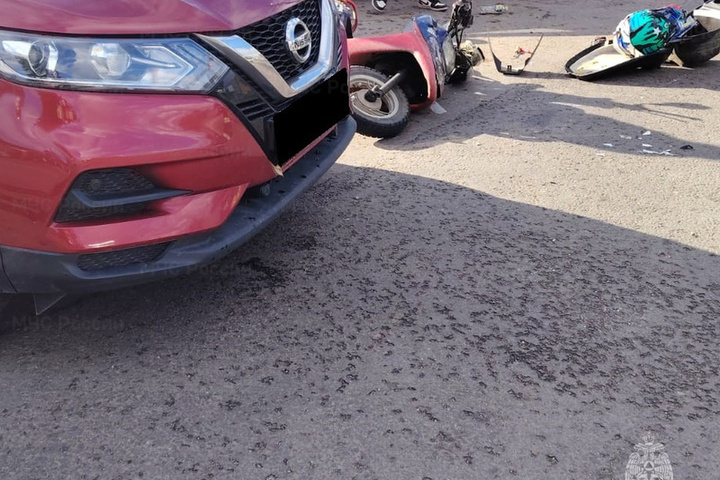 Двухколесный транспорт без номера не поделил дорогу с автомобилем Nissan. После этого, его водитель был госпитализирован в центральную районную больницу Боровского района.