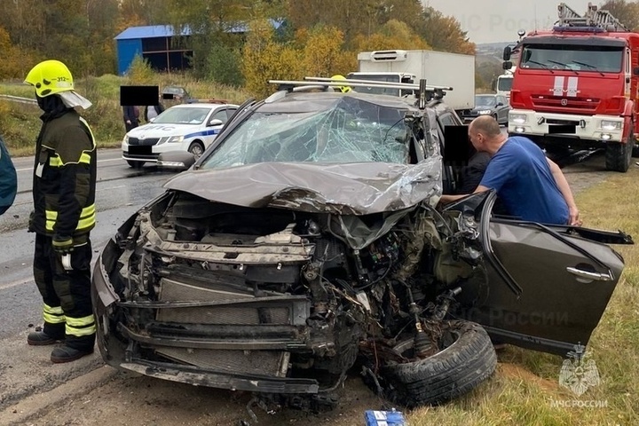 Kia Sorento тушили под Жуковом после столкновения с грузовиком