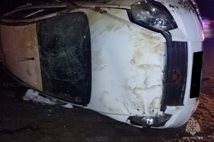 Прибывшие на место ДТП спасатели обнаружили авто лежащим на боку в кювете, сообщает пресс-служба регионального МЧС