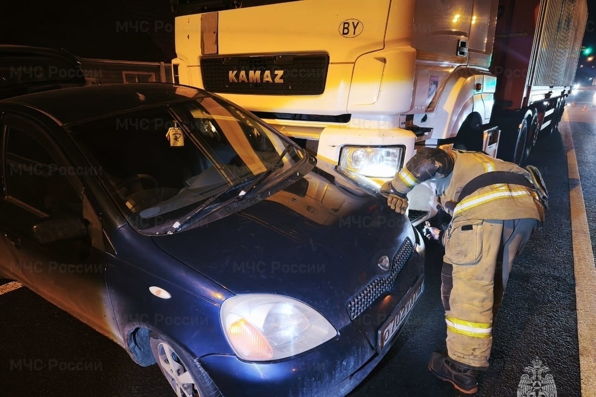 Ликвидация последствий ДТП потребовала участия девяти сотрудников экстренных служб региона. Причины столкновения устанавливают эксперты ГИБДД.