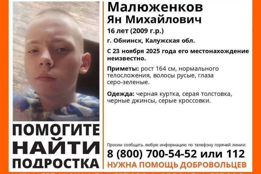 Местонахождение 16-летнего Яна Малюженкова неизвестно с 23-го ноября.