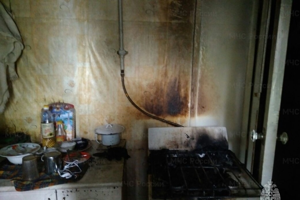 Возгорание в квартире тушили шесть пожарных. Ни один из жильцов не пострадал.