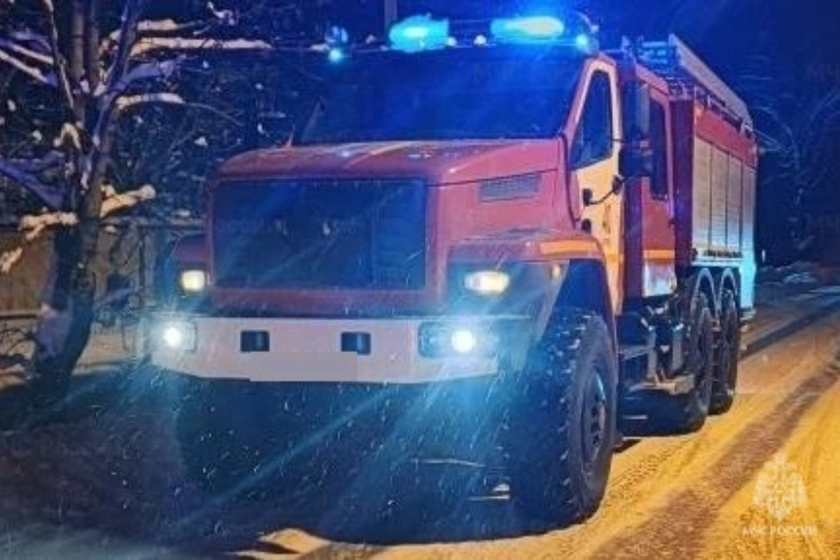 Спасателям пришлось работать в экстремальных погодных условиях и обеспечить подъезд техники к горящему строению во время сильной метели.
