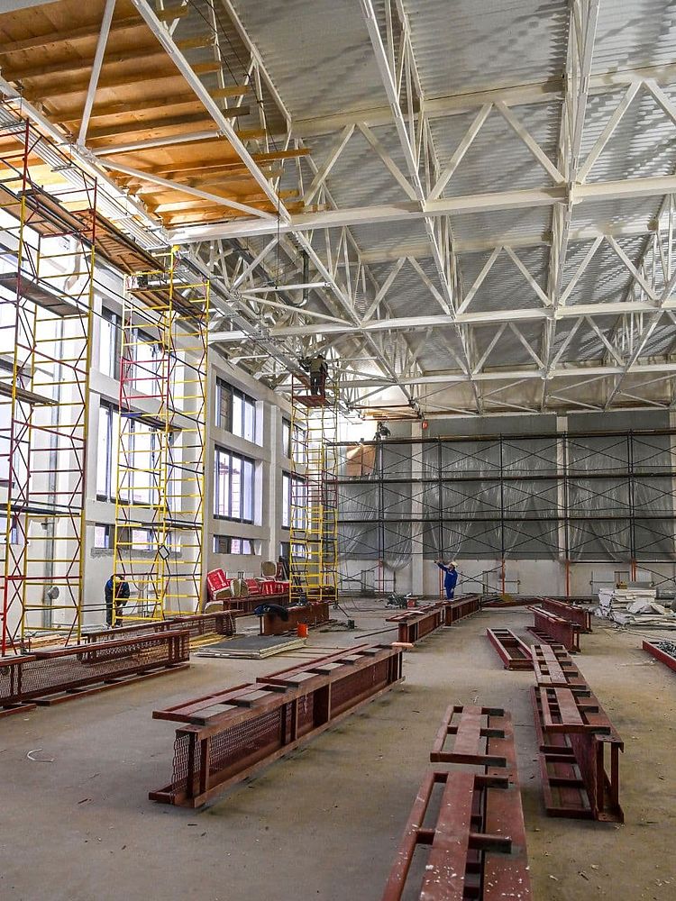 В настоящее время здесь ведутся монтажные и отделочные работы. Уже подключено отопление. Ежедневно вывозится строительный мусор.