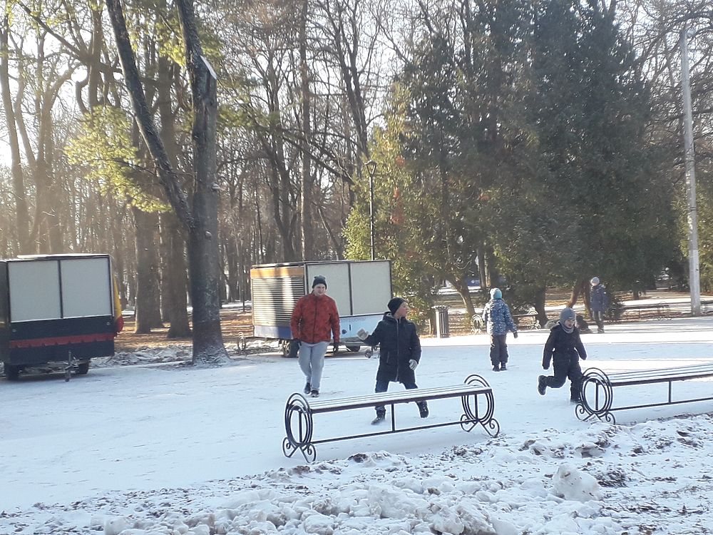 Калужский городской парк культуры и отдыха второй день покрывают искусственным снегом из специальной пушки. Парк действительно преображается и становится зимним и новогодним. Больше всего снегу радуются дети. Они тут же начали играть в снежки и перекидывать его друг другу. Многие ребята заинтересовались технической стороной образования искусственного снега.