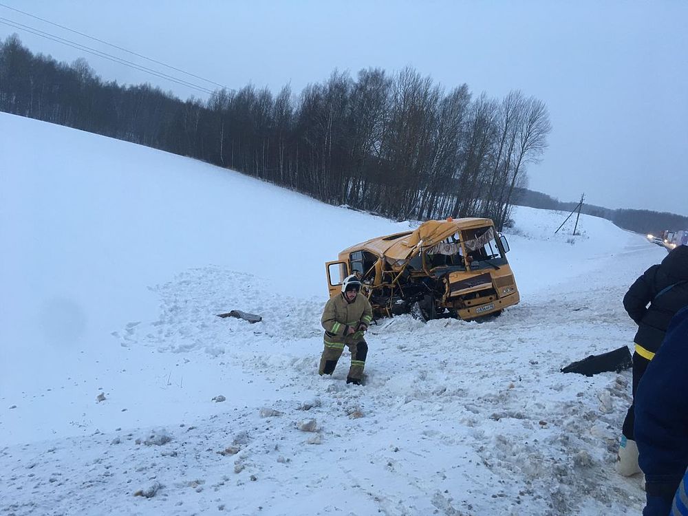 По предварительной информации, школьный автобус под управлением водителя - мужчины 1989 года рождения, следуя по маршруту, наехал на стоящую фуру. На момент столкновения в салоне школьного автобуса находились 15 детей. После столкновения автобус вынесло в кювет.