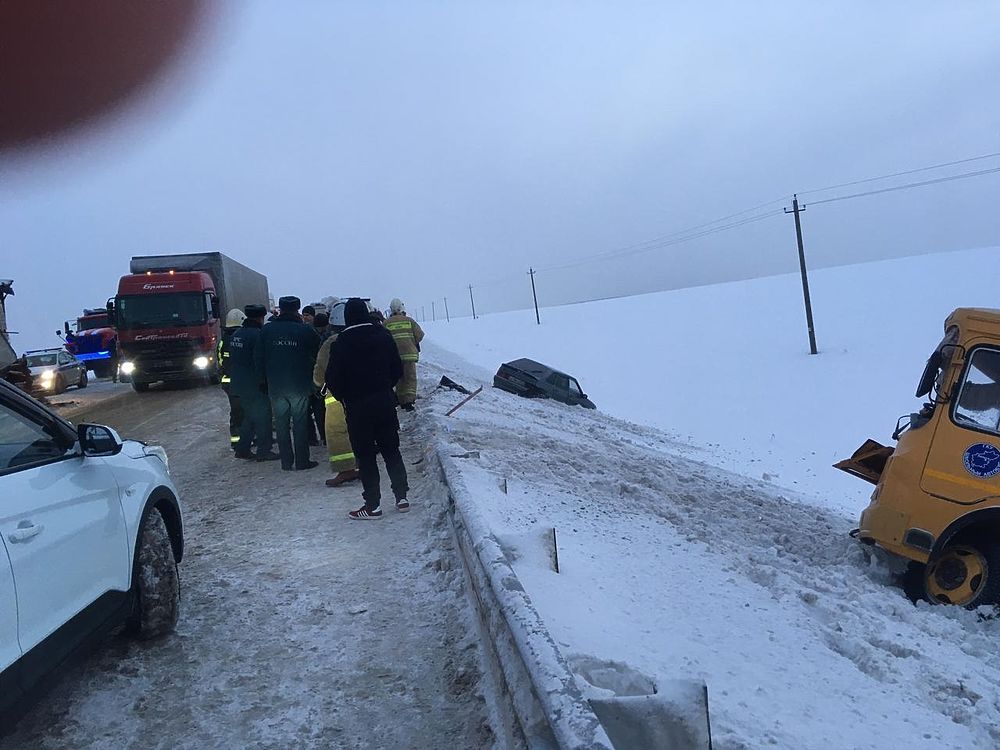 По предварительной информации, школьный автобус под управлением водителя - мужчины 1989 года рождения, следуя по маршруту, наехал на стоящую фуру. На момент столкновения в салоне школьного автобуса находились 15 детей. После столкновения автобус вынесло в кювет.
