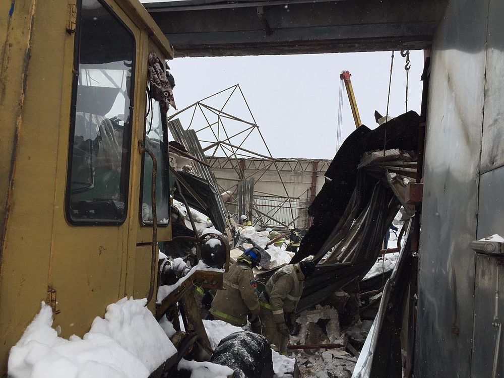 В субботу, 13 февраля в течение всего дня спасателями ведутся поиски людей, которые оказались под завалами от рухнувшей кровли производственного здания в городе Людиново Калужской области. В данном здании предприниматель осуществлял деятельность по ремонту автотранспорта. На разборах задействовано 144 человека и 27 единиц техники. На помощь калужским спасателям прибыл отряд МЧС из Тульской области. Обрушение произошло около 9:00 мск. Под рухнувшей крышей могли оказаться два человека. Тело одного из них было найдено в 12:20 мск. Поиски второго пострадавшего ведутся до сих пор, ночью работы приостановлены не будут.