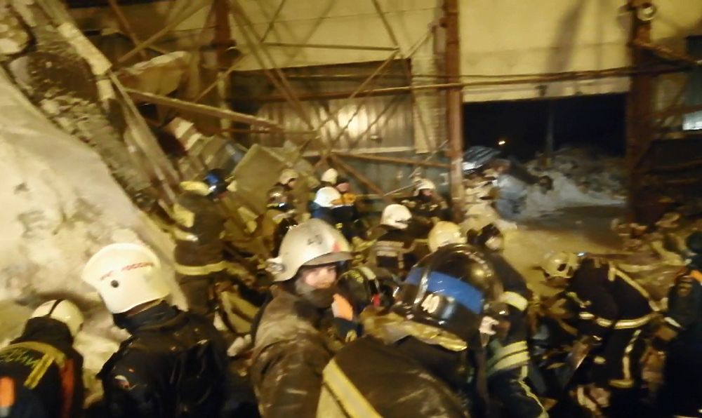 Работа спасателей по поиску людей под завалами обрушившейся кровли в Людиново