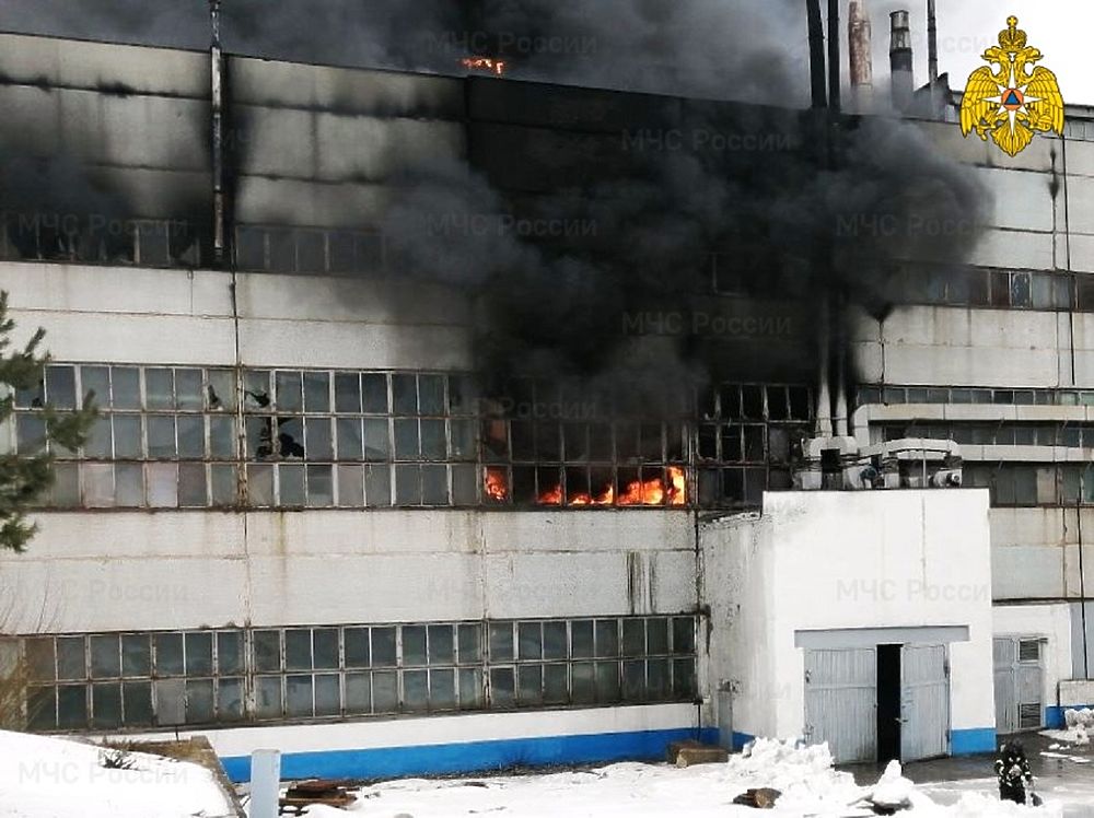 В Калуге на заводе "Кадви" во вторник, 16 марта произошел мощный пожар. Огем оказались охвачены два этажа огромного здания. Огромные клубы черного дыма быстро разлетелись далеко по микрорайону. По словам очевидцев, столб дыма можно было увидеть во многих микрорайонах города. Сообщение о возгорании в производственном здании завода поступило в 12:18 мск. В срочном порядке из здания эвакуировали 16 человек. В здании зафиксировали загорание масляных ванн и склада красок. В результате пожара обрушилась кровля здания на площади 50 квадратных метров. Из людей никто не пострадал. Фоторепортаж с места ЧП смотрите здесь: