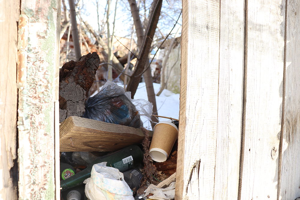 Заброшенный дом, расположенный в центре Калуги на пересечении улиц Смоленской и Академика Королева, стал притоном для выпивох. Вокруг здания разбросаны горы бутылок разной емкости. Судя по "чекушкам", сюда любят захаживать пьяницы и местные алкоголики. Для них данный пункт стал очень удобным. Напротив, как раз располагается винный магазин, где торгуют дешевыми спиртными напитками. Можно выпить "не отходя от кассы". Судя по Яндекс.Карте дом был заброшен еще в 2012 году. Если спуститься вниз по Смоленской можно увидеть еще несколько разрушенных и сгоревших домов, которые до сих пор не снесли.