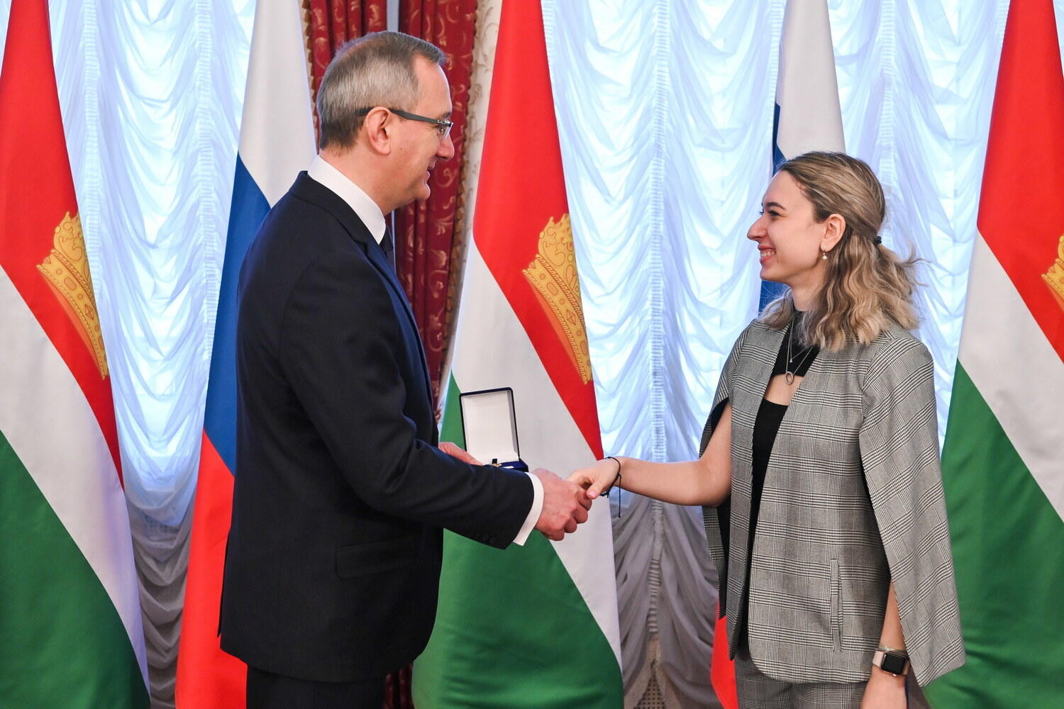 В Калуге в пятницу, 10 февраля губернатор области Владислав Шапша в ходе торжественной церемонии наградил земляков региональными наградами. Отмечены деятели разных сфер, достигшие значительных результатов, благодаря своему труду. Среди награжденных представители науки, здравоохранения, общественной безопасности и других направлений. Так, за особые заслуги и высокие достижения, способствующие социально-экономическому развитию области, медалью ордена «За заслуги перед Отечеством» III степени награждены замгубернатора Василий Быкадоров, замруководителя Управления Федерального казначейства по Калужской области Наталья Балыбердина, председатель регионального Арбитражного суда Владислав Туманов. Всех, кого наградил губернатор, можно увидеть в нашем фоторепортаже.