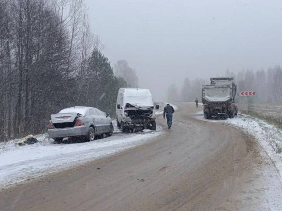 Появились первые кадры с места массового ДТП с участием легковой машины, фуры и микроавтобуса в Калужской области. Авария оказалась смертельной. Все произошло на автомобильной дороге Людиново - Жиздра в районе деревни Мужитино Жиздринского района. По предварительной информации, в 10:10 мск женщина, управляя автомобилем Toyota Corolla, выехала на полосу встречного движения, и столкнулась с Volvo в составе полуприцепа. После этого, легковушку отбросило на Мercedes-Benz Sprinter, который двигался в попутном направлении. Женщина-водитель скончалась на месте происшествия. Сейчас здесь работают оперативные службы, обстоятельства аварии устанавливаются.