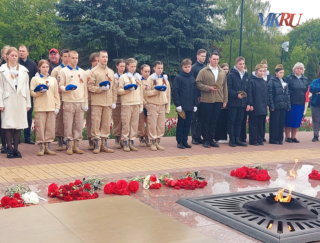 Представители десяти школьных отрядов маршем прошли до Вечного огня и возложили цветы к могиле Неизвестного солдата.