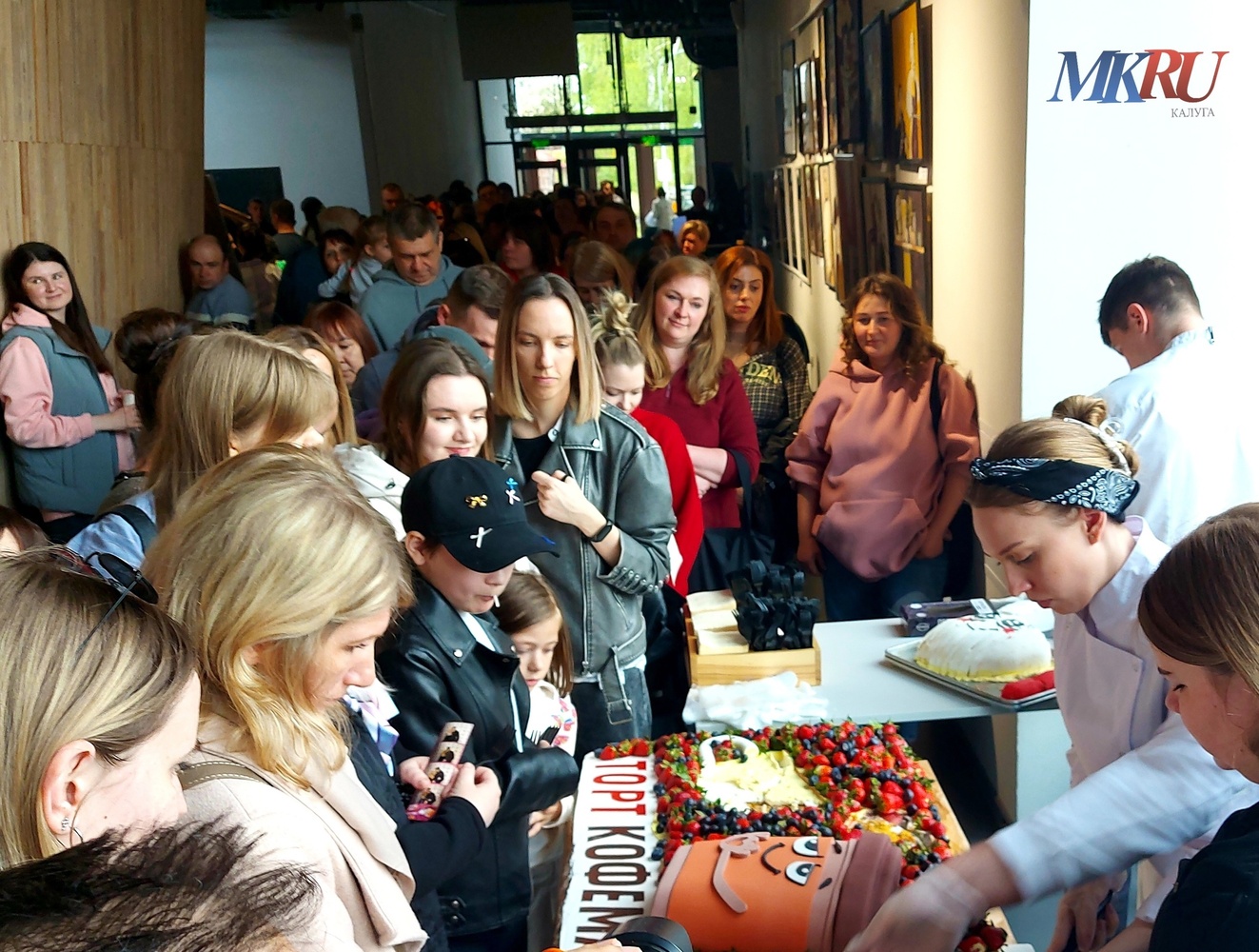За тематическим тортом выстроилась огромная очередь сладкоежек. Чтобы получить свой кусочек нужно было запастись терпением.