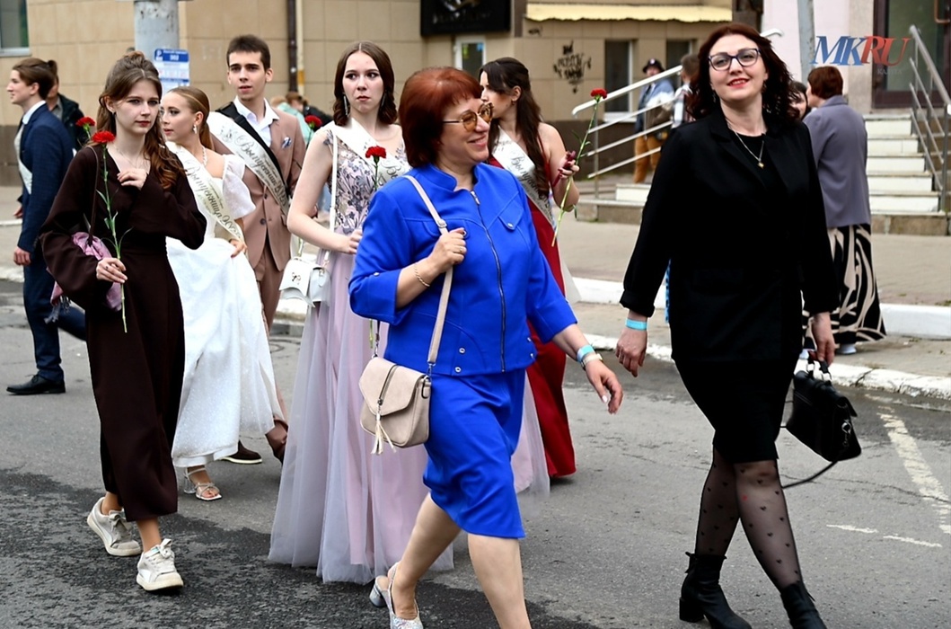 Традиционное шествие прошло по центральным улицам города, вчерашние школьники возложили цветы к Вечному огню на площади Победы.