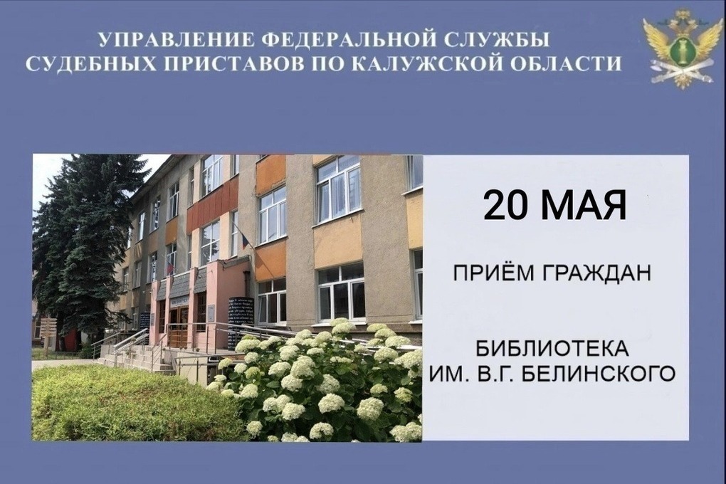 В рамках оказания бесплатной юридической помощи сотрудники УФССП по Калужской области 20 мая проведут прием в библиотеке им. Белинского (Луначарского, 6) в областном центре.