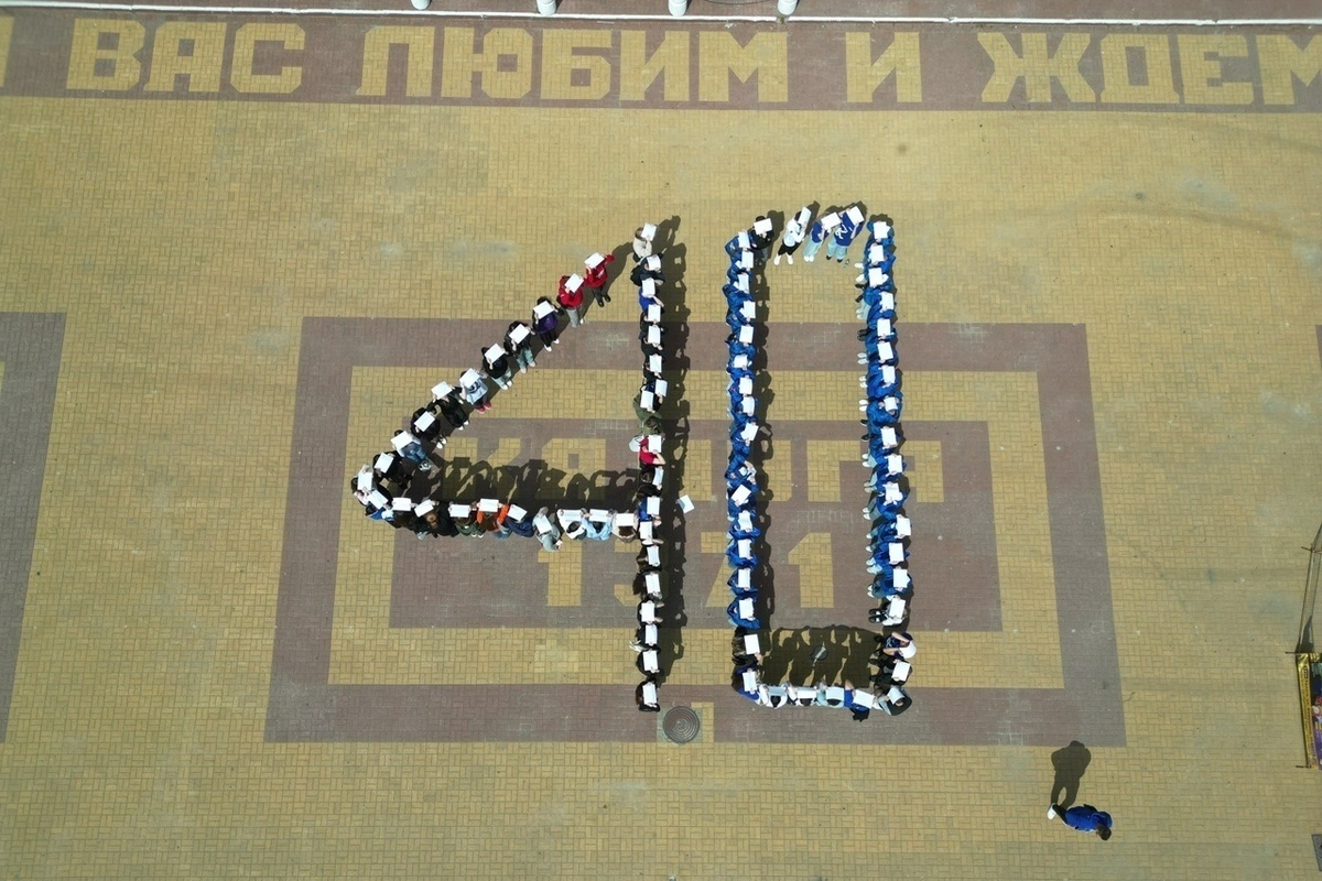 Сто студентов и волонтеров Победы выстроились в форме числа «40», порядкового числа Калужской области, на Театральной площади.