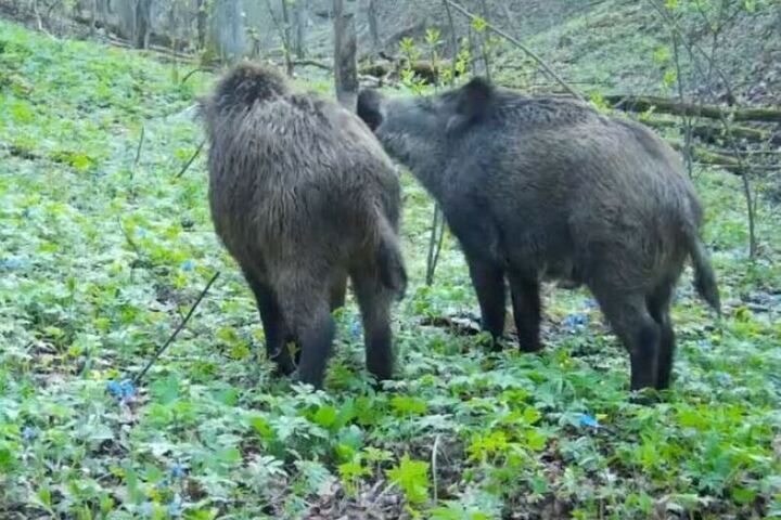В фотоловушки «Калужских засек» попали играющие кабанчики