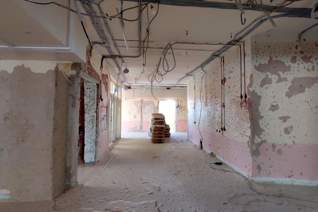 В здании на Плеханова полным ходом ведутся работы по обновлению помещений. Готово к чистовой отделке эндоскопическое отделение, к отделке –гинекологическое, еще в двух отделениях БСМП ведутся электромонтажные работы.