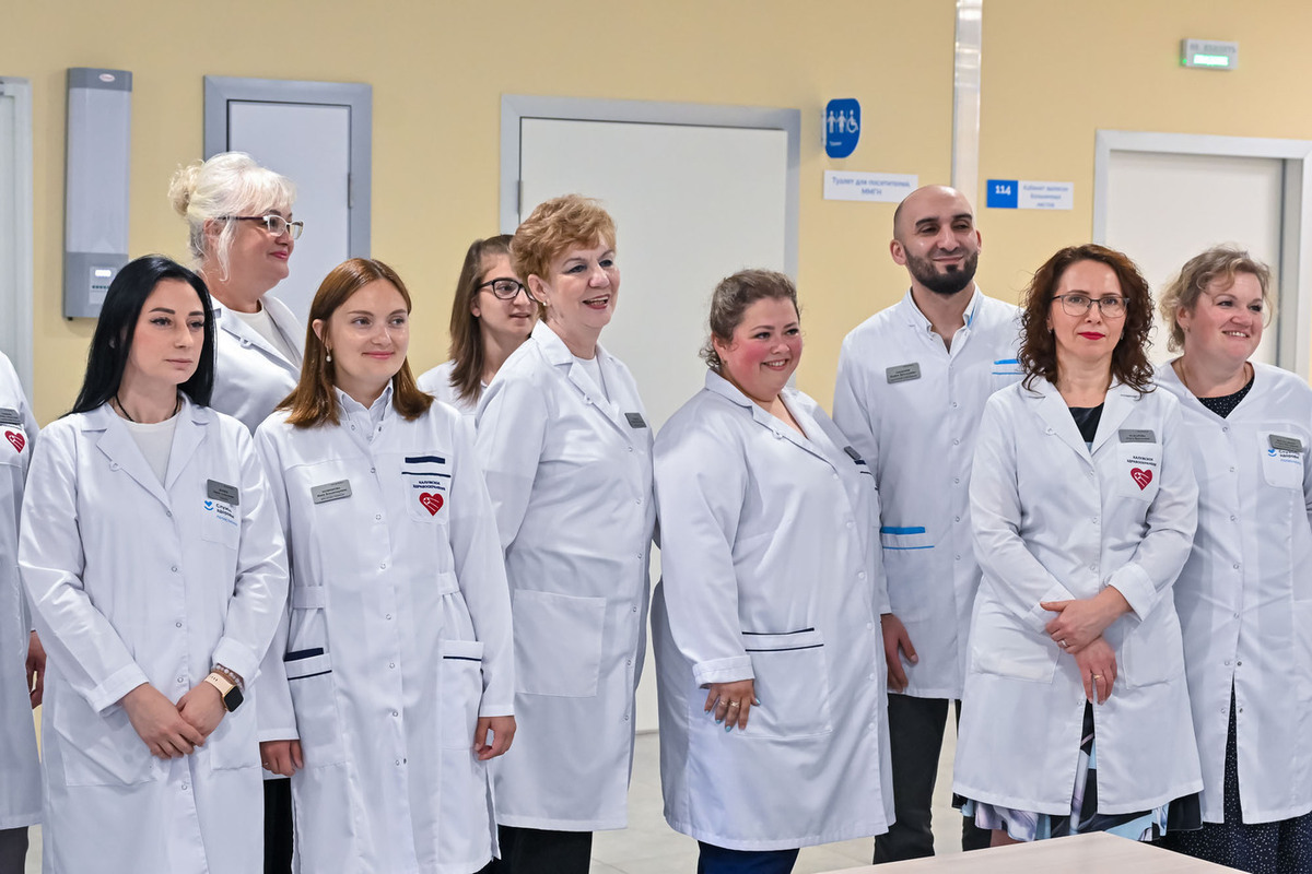 Минздрав региона сумел к открытию практически полностью укомплектовать штат. В нем есть все основные специалисты, детские и взрослые кардиологи, травматологи, хирурги, отоларингологи, терапевты и педиатры. Врачи уже приступили к работе. Общий штат поликлиники составляет 500 человек. В августе сюда придут еще 11 выпускников по целевым направлениям.