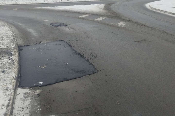 Там провели ямочный ремонт литой асфальтнобетоной смесью.
