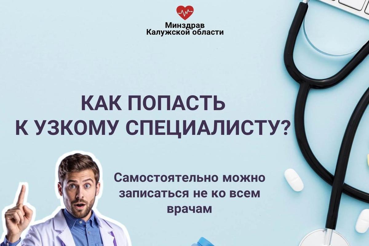 В Калуге пациенты могут обратиться к узкопрофильным врачам только после посещения терапевта, педиатра или врача общей практики в поликлинике по месту жительства. Эти специалисты проводят первичный осмотр и, при необходимости, направляют к профильному врачу.