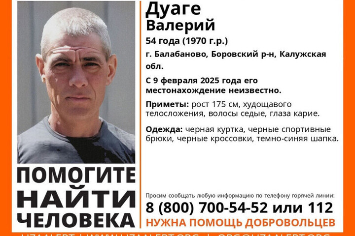 Валерий Дуаге пропал в Балабанове 9 февраля.