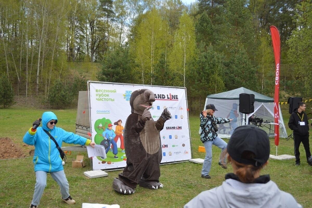 Также сегодняшнее мероприятие посетил Хохуля — символ экологии Калужской области. Он поднял участникам настроение и провёл с ними разминку.