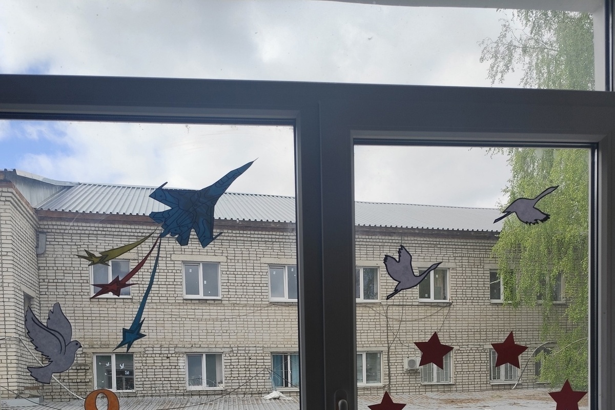 В этом году к ней присоединились и калужане - преподаватели Федерального казенного профессионального образовательного учреждения №57 ФСН. Они украсили окна учебных кабинетов символами Победы.
