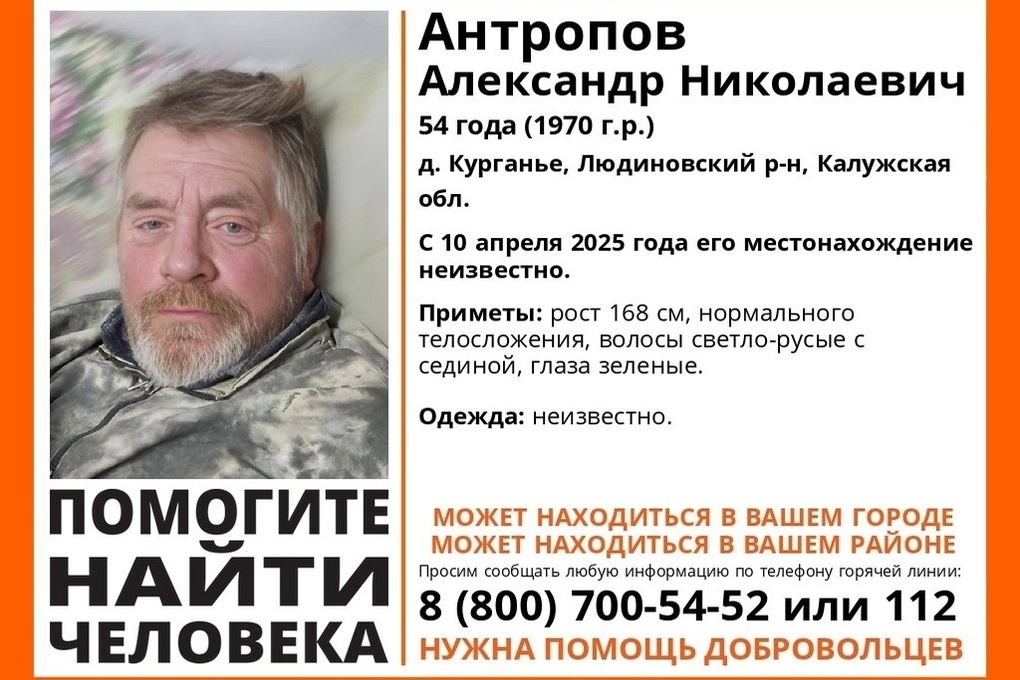 Уроженец деревни Курганье, 54-летний Александр Николаевич Антропов пропал 10 апреля.